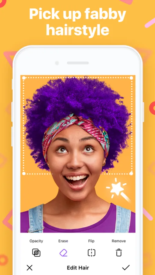 — Hairstyles & hair color. Try on that trendy haircut you’ve dreamed of, change hair color easily!