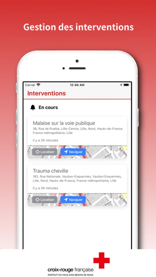 En lien permanent avec la solution de gestion des opérations Minutis, l'application mobile Minutis permet un suivi en temps-réel des intervenants engagés sur une opération.