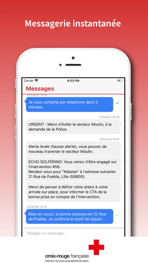ATTENTION : Minutis Mobile est à destination des intervenants de la Croix-Rouge et de ses partenaires externes engagés sur le terrain d’opérations de secours et d’aide à la population. La connexion à l’application nécessite des identifiants fournis par la Croix-Rouge. Si besoin de plus d’informations, contactez-nous en envoyant un mail à support.minutis@croix-rouge.fr