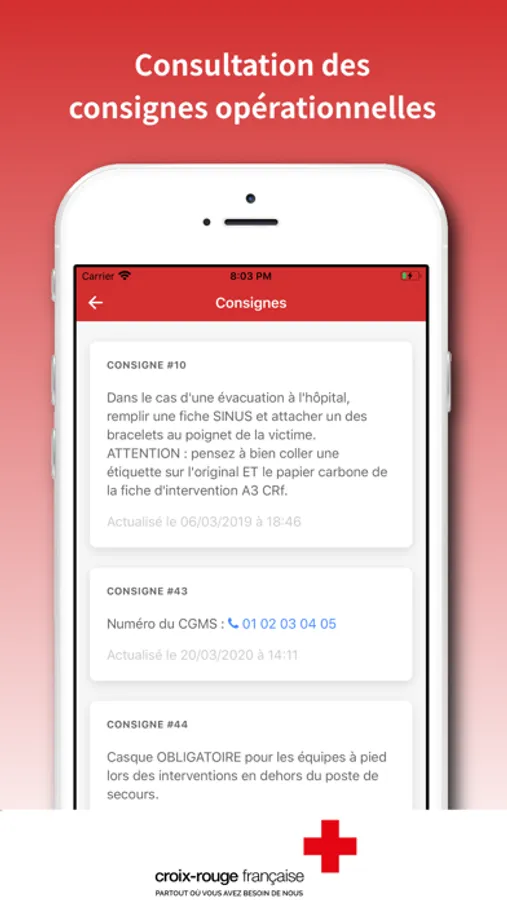 Chaque intervenant authentifié peut ainsi informer les différents maillons de la chaîne de commandement d'une opération :