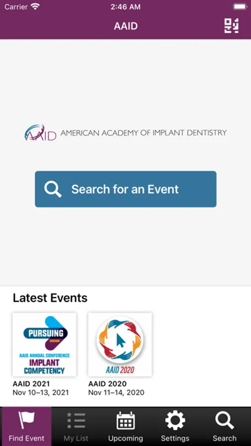 The AAID Events mobile application allows you to access this organization's various conference event apps. Within the underlying event apps, users can access presentations, exhibitors, and connect with other attendees. Users can also take notes adjacent available presentation slides and draw directly on slides inside the event apps.