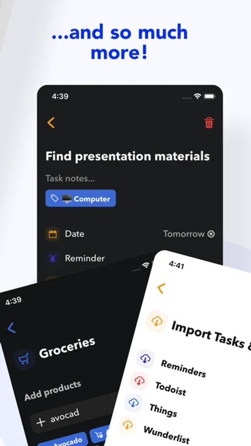 • Import from Apple Reminders, Wunderlist, Todoist & Things