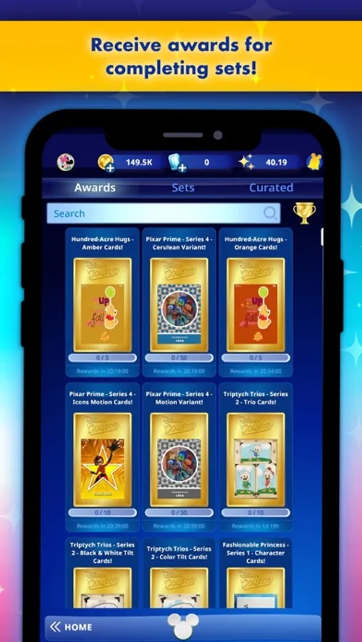 Collect & trade your favorite Disney characters from over 90+ memorable years of timeless Disney creations, Disney animations, and Disney storylines in the Disney Collect! by Topps digital collectibles app. Disney Collect! by Topps brings to life the entertaining and delightful collector experience to rip digital collectible packs every day, trade with fans around the world, complete sets to earn rewards and much more. Discover a new world of collecting with Disney Collect! by Topps.