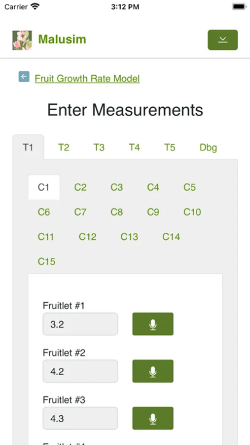 The Malusim app lets apple growers record, retrieve and analyze data to optimize fruit production. For a specific growing location, data on irrigation and fruit growth rates can be used to predict fruit yields. The app uses voice recognition to make it easier for growers to record fruit measurements in the field, even when offline.