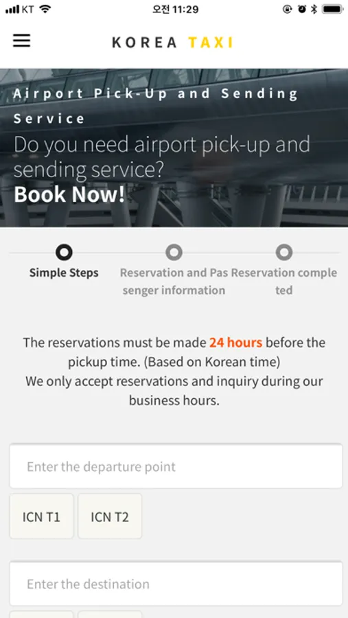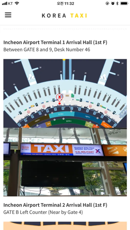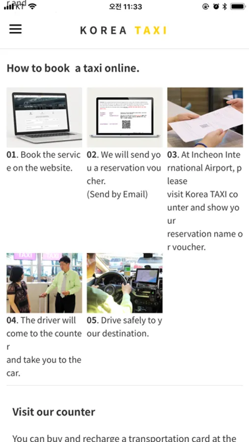 ④ At Incheon International Airport, please visit Korea TAXI counter and tell your name.(Check the location by using app) If you asked us to meet outside of airport, the driver will be at the location you requested.