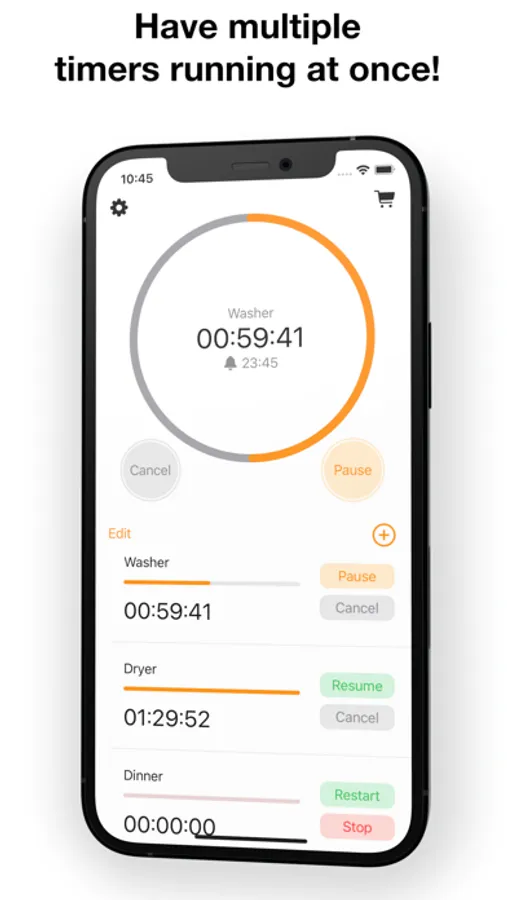 This is a countdown timer app. Set multiple timers, and run them at the same time. Get a notification or alarm when the time is up!