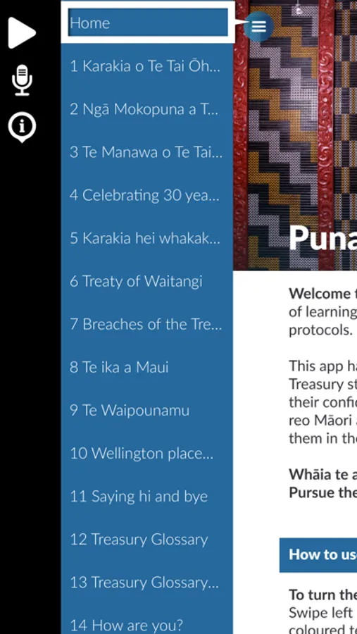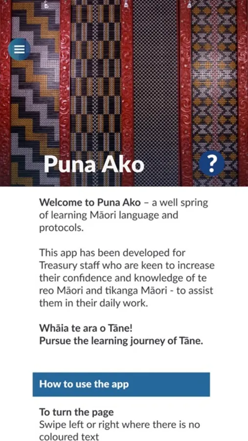 This app has been developed for Treasury staff and clients who are keen to increase their confidence and knowledge of te reo Māori and tikanga Māori - to assist them in their daily work.