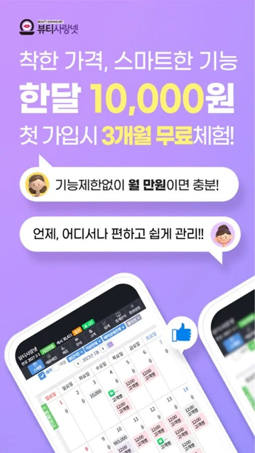 월 10,000원으로 샵관리, 고객관리, 예약관리를 완벽하게 해결해 주는 뷰티사랑넷~!