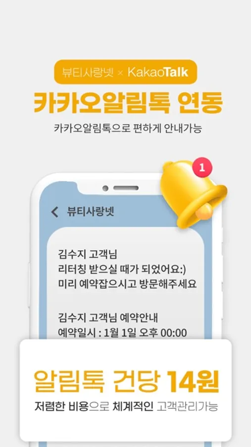 카카오 알림톡 발송 가능! 알림톡 비용 14원! 업계 최저!