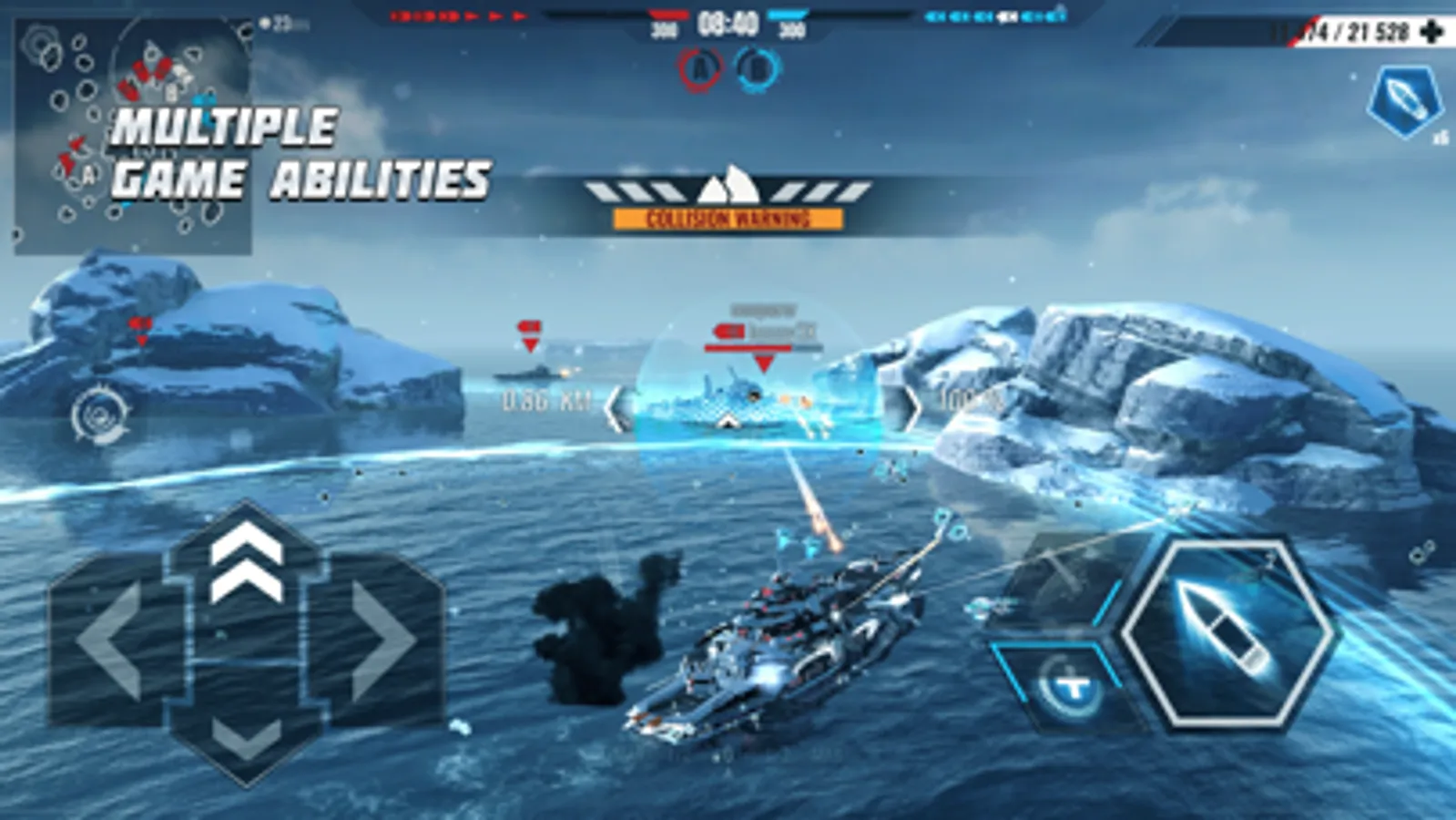 Get aggressive in your warfare tactics with cool battle abilities. Be invisible and sink gunships at point blank, use energy shields, repair during combat, use EMP to destroy torpedoes and burn enemies with laser. Master shooting to become the top commander of the future wargame machines!