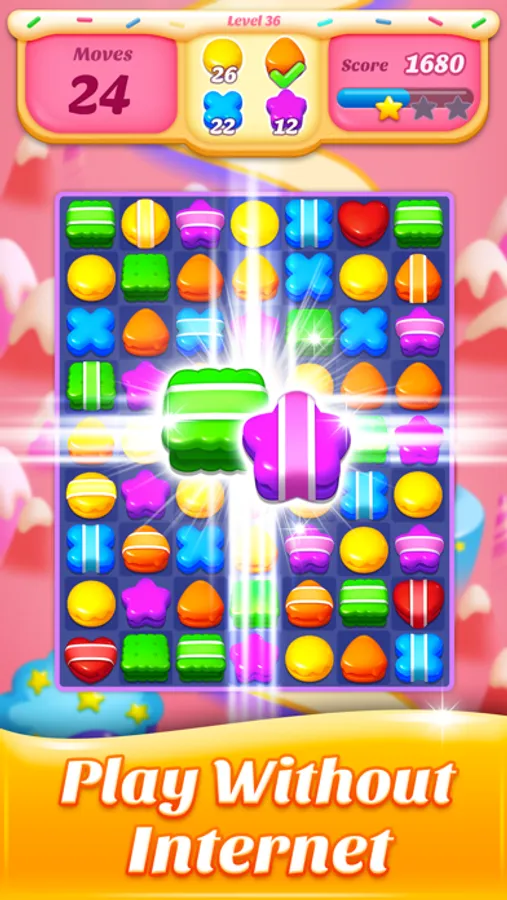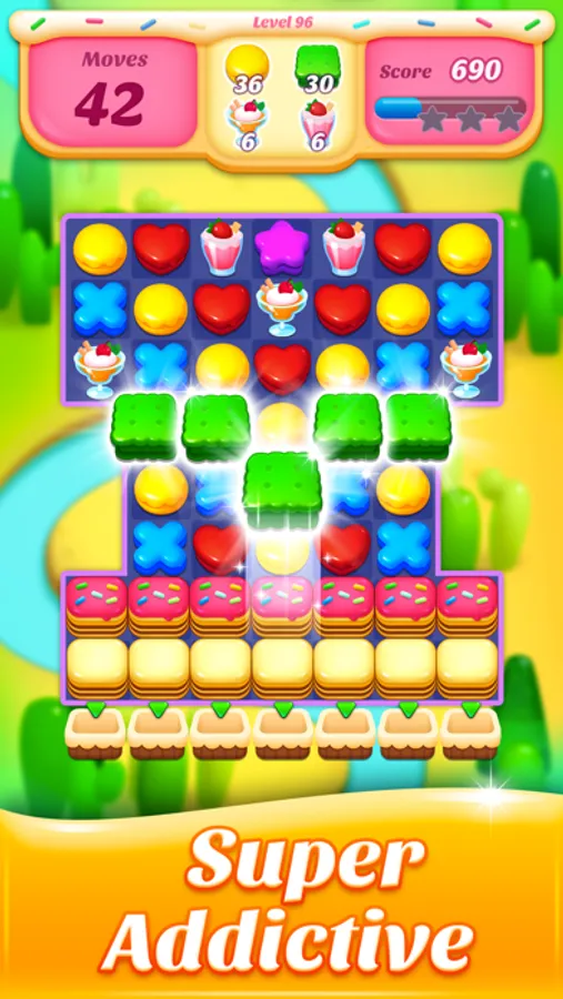 ●Crush cookies with exciting puzzles to get more stars and high scores