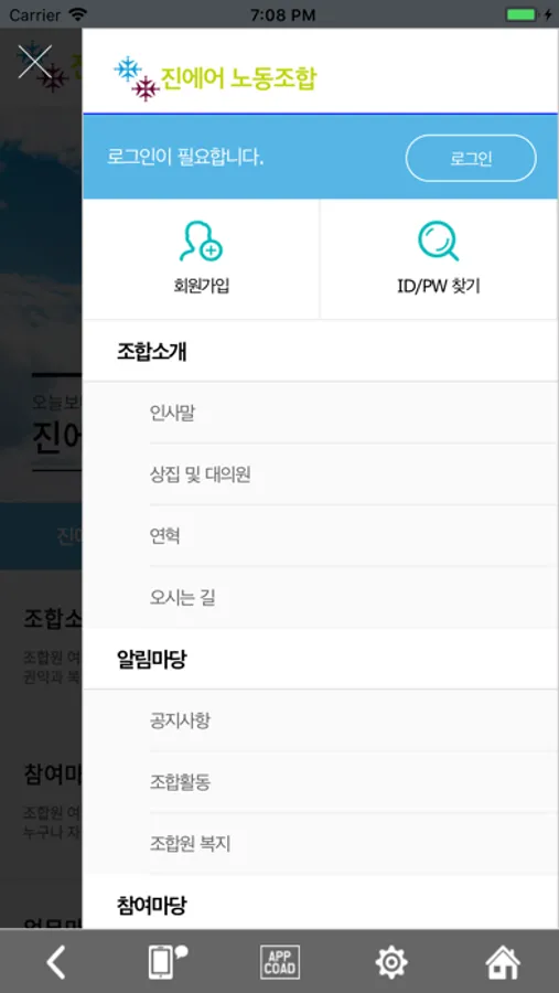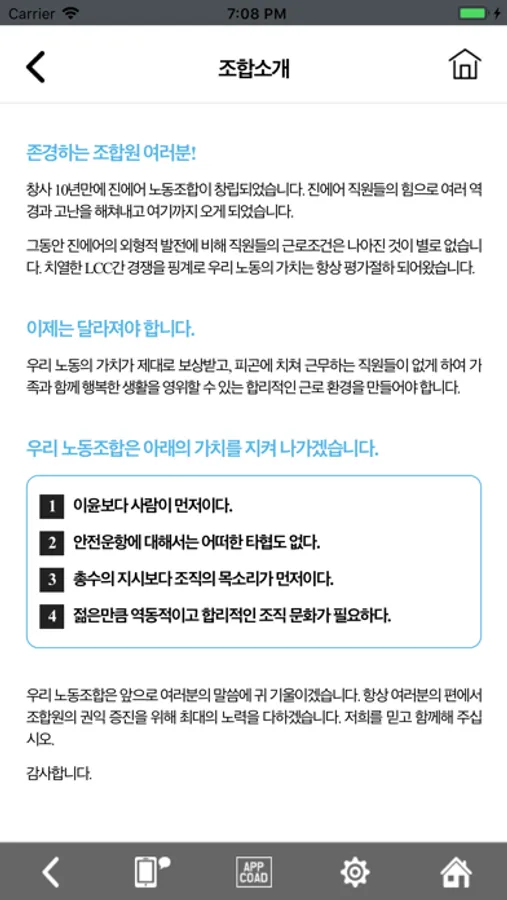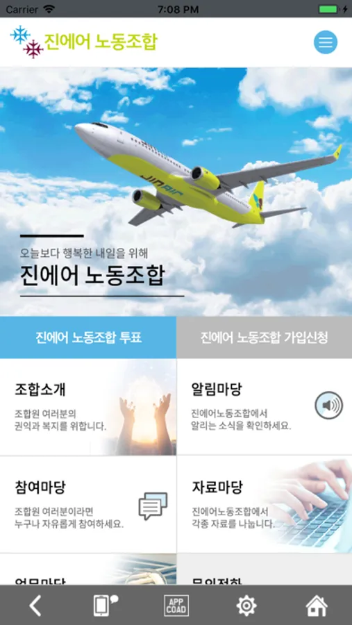 진에어 노동조합원의 커뮤니케이션을 위한 어플입니다.