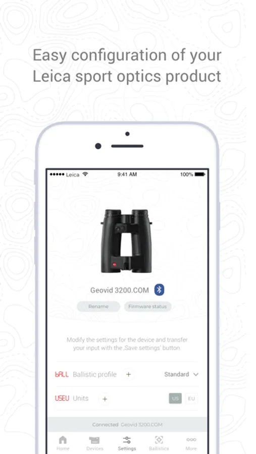 Nutzen sie die Leica Hunting App um ihren Leica Entfernungsmesser ganz bequem über das Smartphone zu programmieren. Wählen sie alle verfügbaren Einstellungen aus und übertragen sie ihre Daten unkompliziert via Bluetooth.