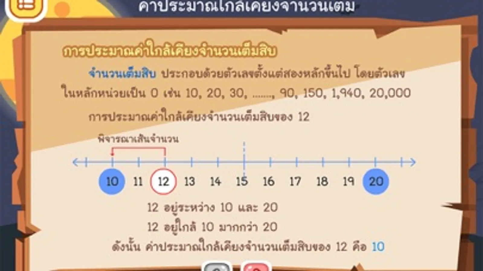 - ให้เด็กๆ ฝึกฝนการหาค่าประมาณใกล้เคียงจำนวนเต็มผ่านการเล่นเกม