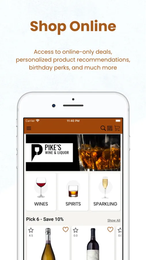With the App you can browse for the wines & spirits available in the store, and also order a delivery or pickup.