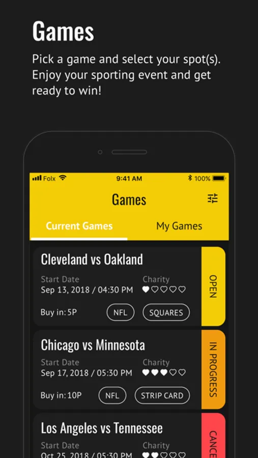 ScoreSplit allows users to enter Square-Games and Strip-Cards to win cash prizes – and support charities/fundraisers in the process.