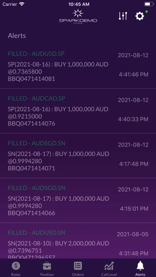 This is the iOS companion app to the Spark Systems' next-generation FX trading platform.