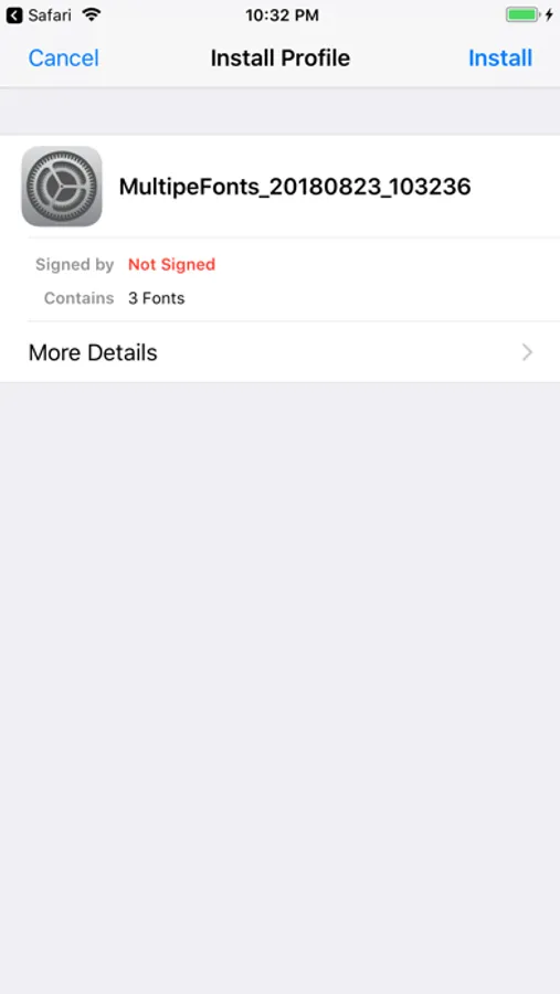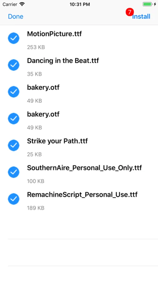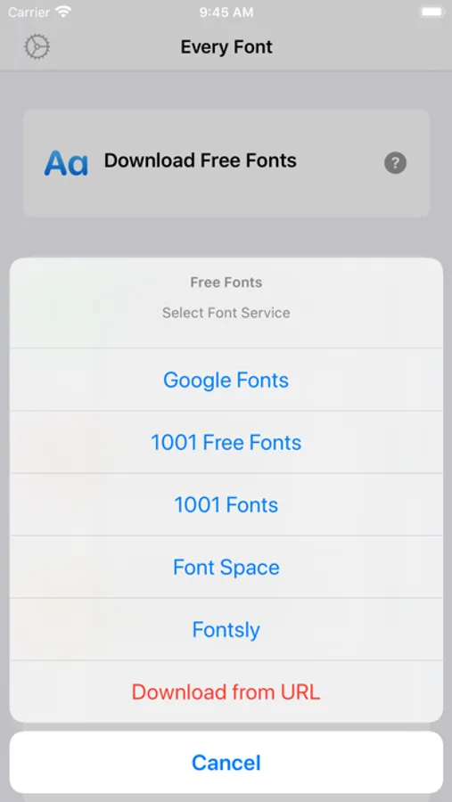 The app supports installing from Free Font Servers, [Files] app, iCloud Drive, Dropbox, email, iTunes File Sharing and download from URL.