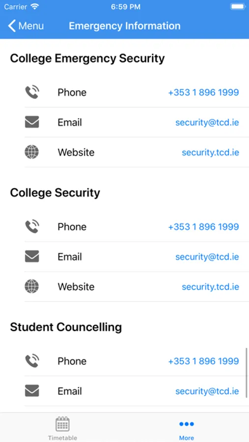 The Student companion app of Trinity College Dublin, Trinity Live, allows students to integrate directly with university services. Features Timetable, Digital ID, Library, Way-finding, and Student Provisional Exam Results.