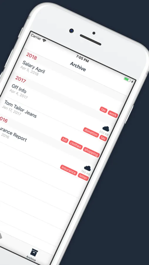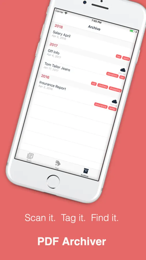 Organize your documents digitally. Just scan and tag them with the PDF Archiver.