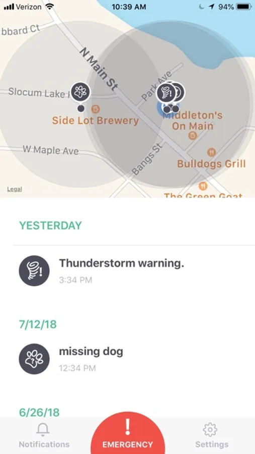 Crimezer allows citizens to get timely alerts in their area. Local first responders such as Police and Fire Departments will post alerts including missing pets, missing adults, bad weather or traffic in the area and recent crimes.