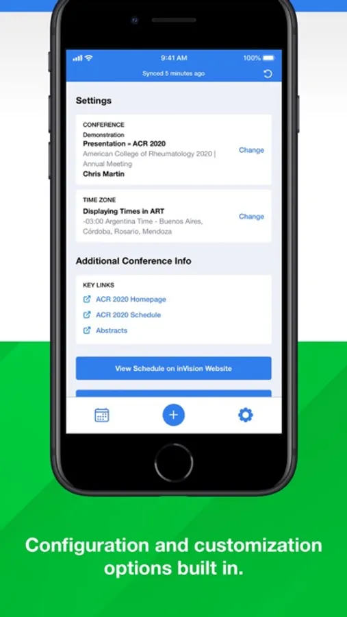 The inVision mobile app provides specialized medical conference/congress functionality in the palm of your hand and is used in conjunction with the inVision platform. It synchronizes the conference schedule to your device and allows you to view it offline at the conference. You can take notes or photos related to specific presentations without worrying about losing a connection. If the Wi-Fi connection gets dropped, the inVision app will re-sync when that connection becomes available.