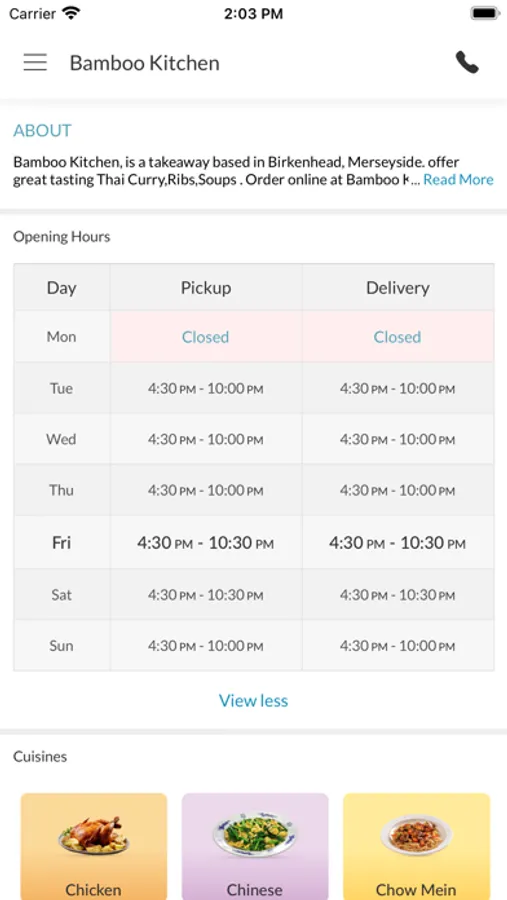 Here at Bamboo Kitchen we are constantly striving to improve our service and quality in order to give our customers the very best experience. As a result, we are finally proud to unveil and introduce our latest improvement, our new online ordering app! You can now relax at home and order your favourite, freshly prepared meals from Bamboo Kitchen, online. You can even pay online!Bamboo Kitchen in Birkenhead will always be offering great food at affordable prices. Please feel free to browse our new app and place your order online.