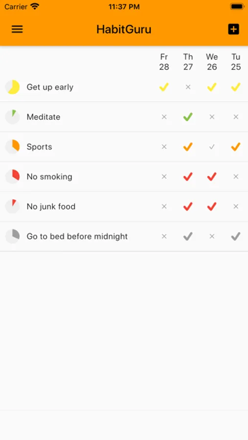 HabitGuru is here to help you keep up with your routine, remind you to maintain your targeted habits, to keep records of your habits and to make a difference in your life.