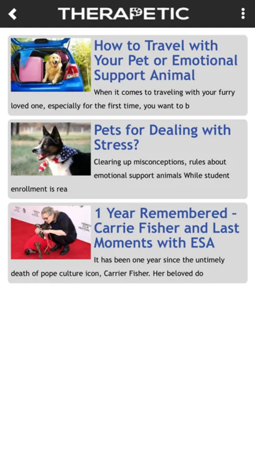 TheraPetic offers registration and resources for Service Dogs, Emotional Support Animals (ESAs), and Therapy Dogs through our Portal Access for Clients. Once logged in, Clients will be able to obtain their own electronic versions of ESA letters, forms required by major airlines, and other resources.