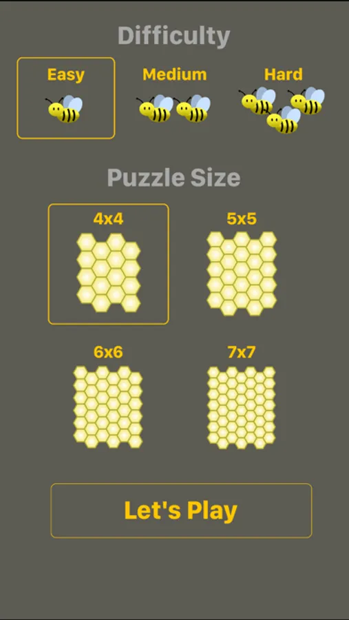 As you get better, you can increase the difficulty level. As difficulty increases, more bees are in the honeycomb and it becomes harder to figure out where the bees are.