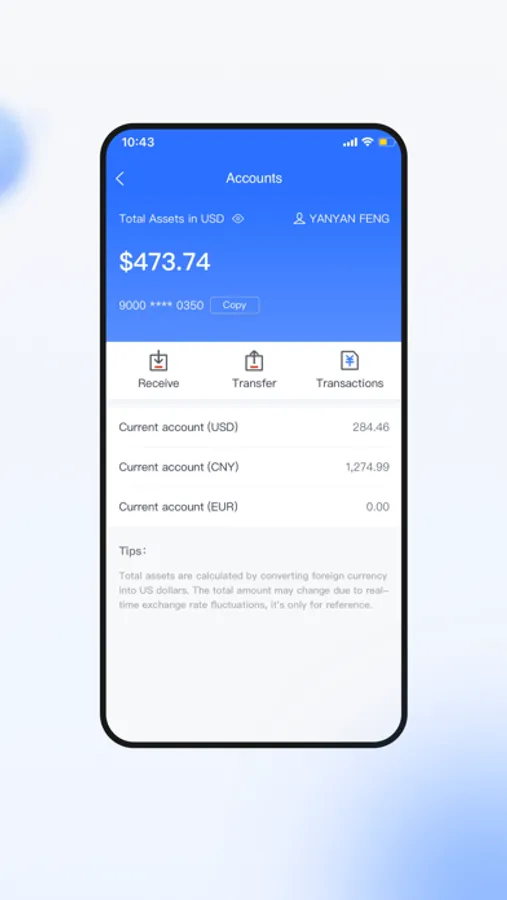 Multiple currency account supporting USD, EUR, GBP, HKD, JPY, CAD and CNH
