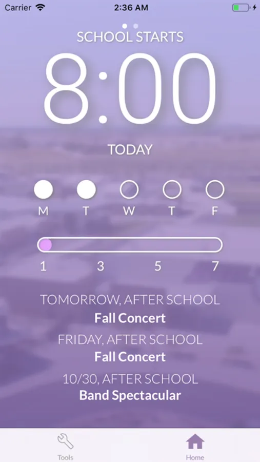 - Schedules: Students are able to see the minutes until the end of every class, passing period, the time school starts and the class schedule for the day on the home page.