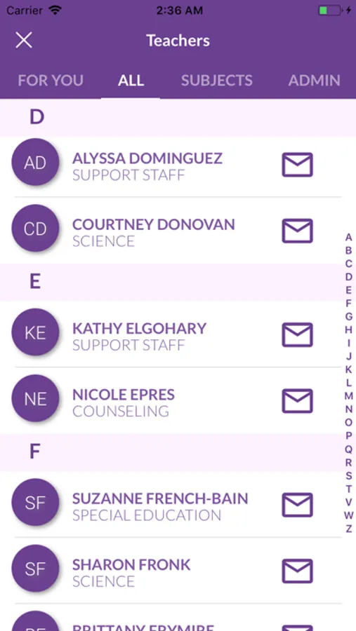 - Teachers: Students can save their classes and teachers, and the app provides an easy-to-access directory of all the teachers and administration staff on campus, making the task of emailing a teacher more efficient.