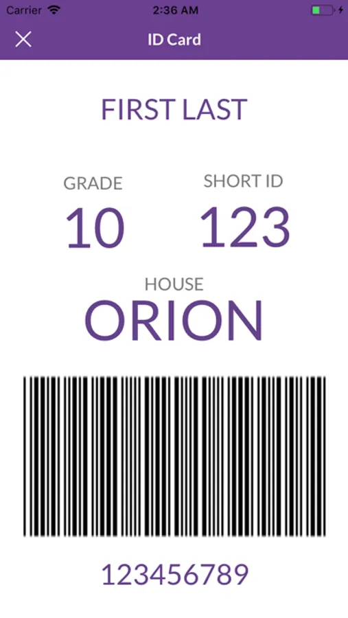 - ID Card: Students can save their ID card with its barcode within the app in case they forget to bring their physical ID cards.