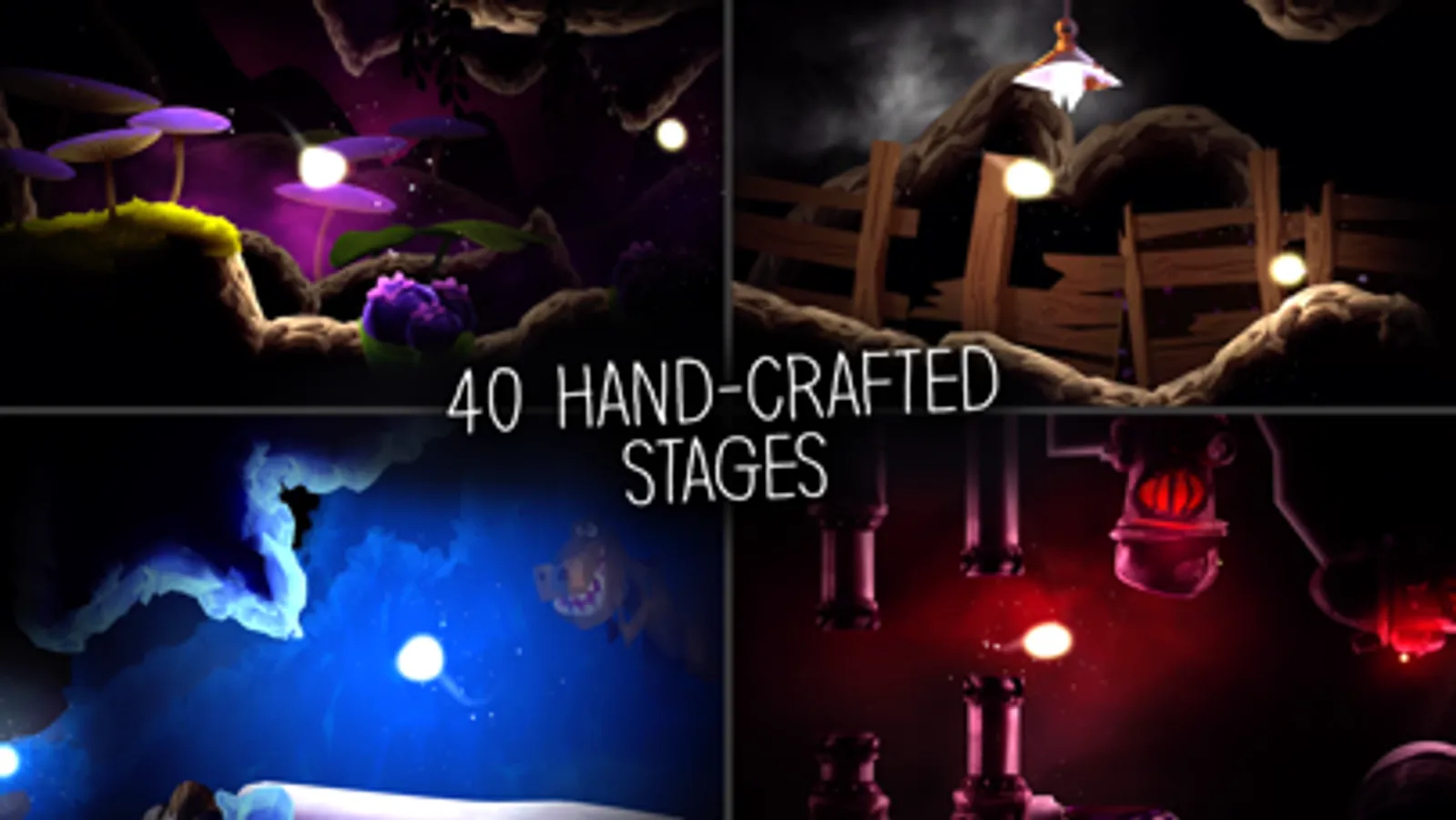 40 hand-built levels take you on a journey through stunning colorful worlds, looking for lost friends. An emotional game experience where you can discover and admire something new in each level.