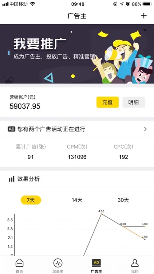 .广告主:投放广告,精准营销。支付完成后即可弹出广告曝光率高达95%,广告配置上线即可抵达用户手机端。