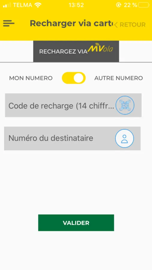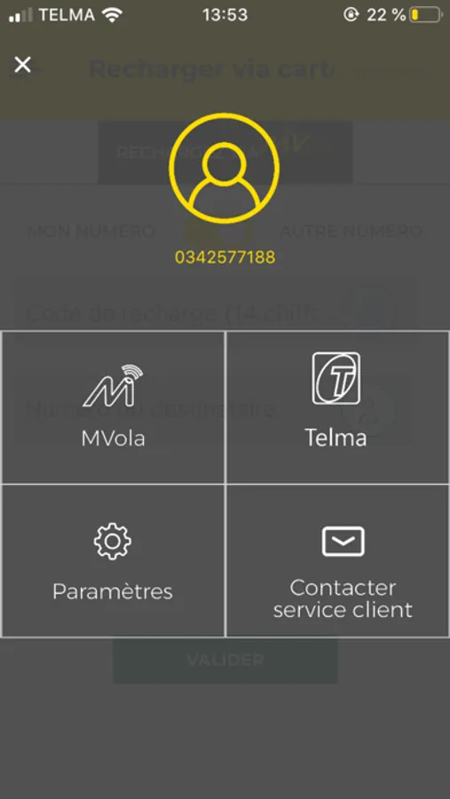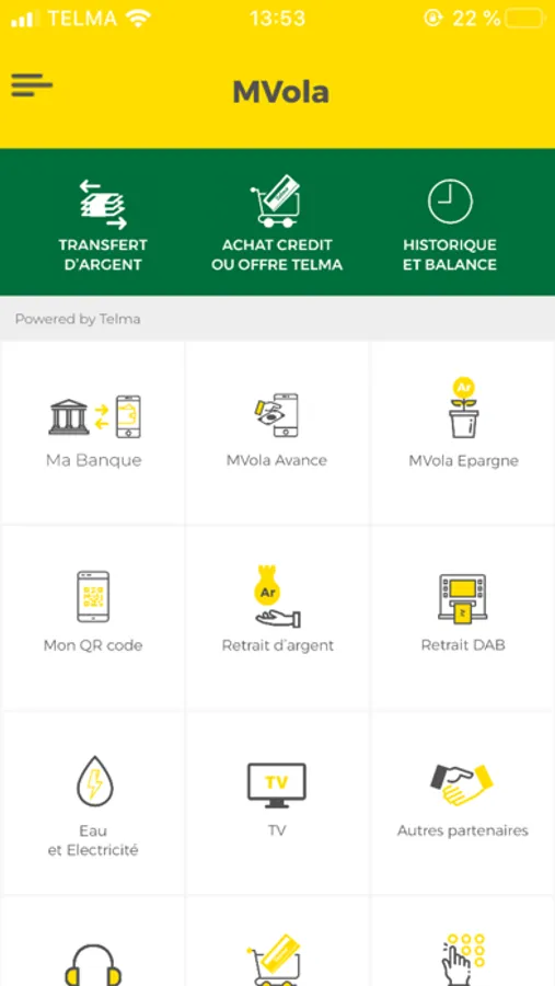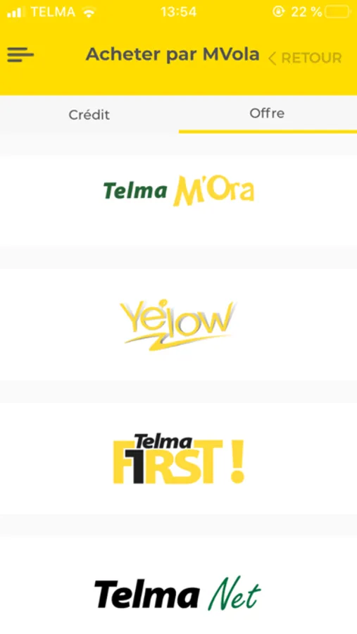 - Achat crédit ou offre Telma pour acheter du crédit ou de l’offre Telma via Mvola ou votre Main account Telma,