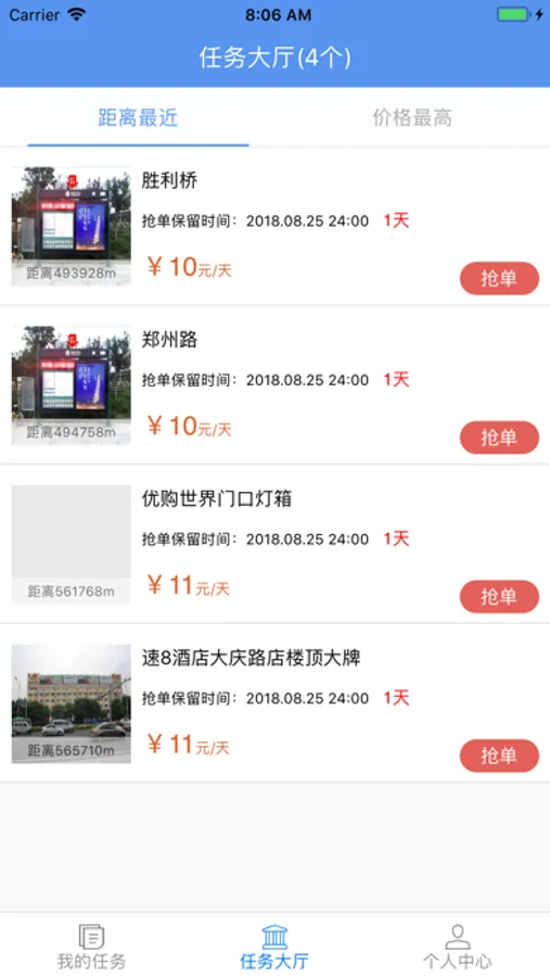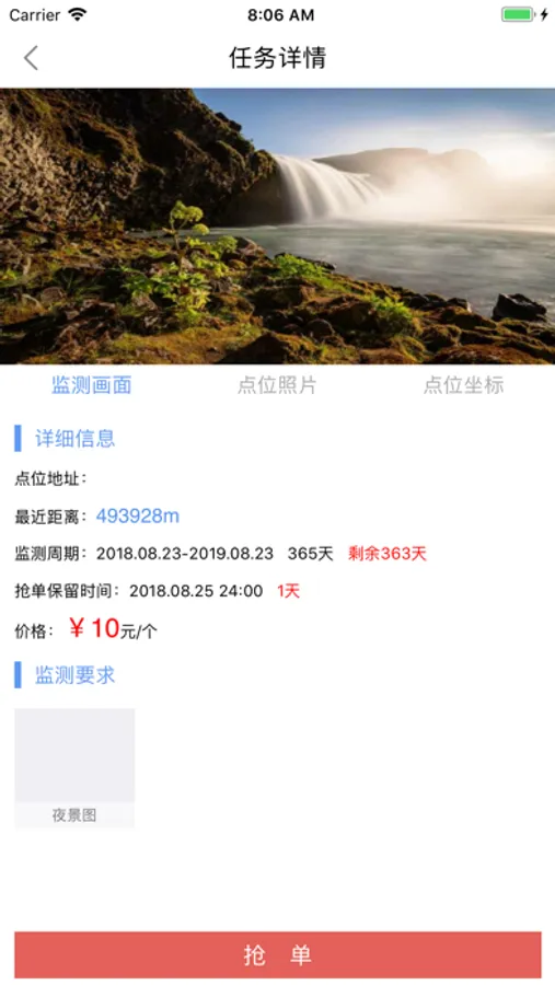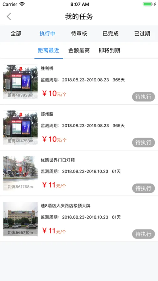 面向全民的手机APP软件,通过APP领取任务,按照对应的拍摄要求,对广告牌进行拍照,实现现场定位、实时上传并生成实时监测报告。