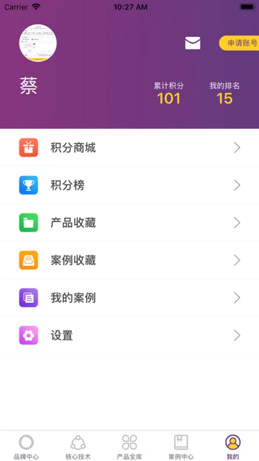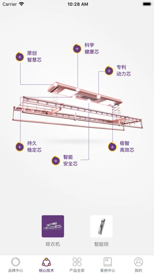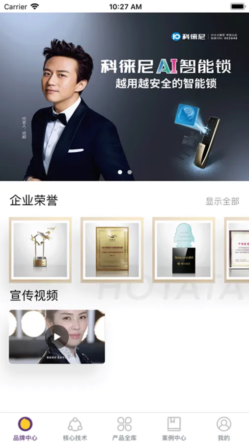 内容包括 【品牌中心】、【产品库】、【核心技术】、【案例库】
