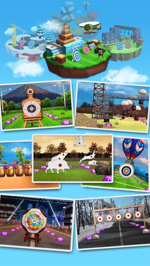 This is a real simulation of archery games, both single game mode and "1 V 1" mode, which means you can compete with other person online, and become a super star in the archery arena.