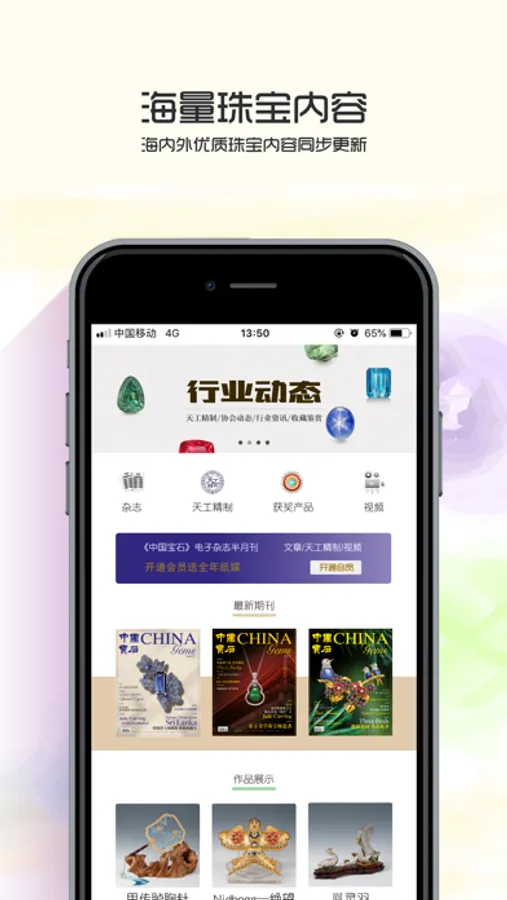 《中国宝石》杂志于1992年创刊,是一本由国土资源部主管,中国珠宝玉石首饰行业协会、国土资源部珠宝玉石首饰管理中心主办的国家级权威珠宝刊物。杂志内容广泛,涵盖了政策、市场、设计、投资收藏、人物、时尚资讯等诸多方面的内容,运用了时尚的编辑手法,简洁、清新、高雅的版式,集政府、专家、学者、国内外顶级设计师的声音于一身,传达国际、国内高端资讯及顶级珠宝收藏、极品珠宝鉴赏的最新动态,堪称是一本宝典一样的杂志。