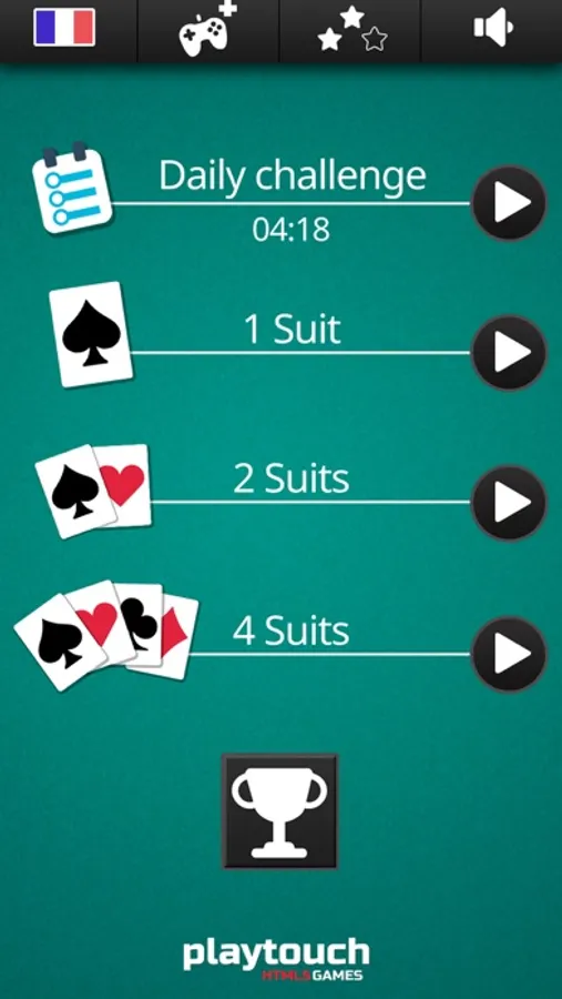 - 3 play modes: suites of 1 or 2 or 4 cards
