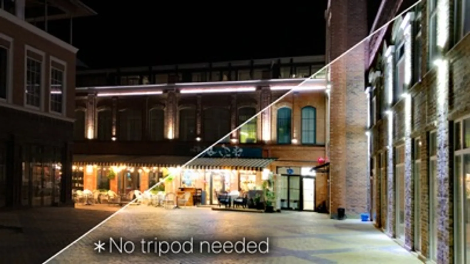 The application presents the "night mode" for camera featuring one of most demanded features for night life photographers. It allows to take stabilized long exposure photos by the phone bare hands. Eliminating the need to carry and use a tripod over nightclubs and the streets of the night city.