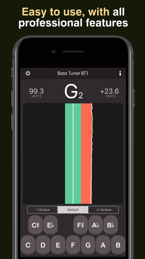 Bass Tuner BT1 is a specialized instrument tuner optimized for tuning low-frequency musical instruments. Tune any bass instrument (bass guitar, double bass, bassoon, bass clarinet, bass trombone, bass saxophone, cello etc.) with this extremely accurate and easy-to-use chromatic tuner. Bass Tuner BT1 also comes with a handy tone generator that plays any note as a reference for tuning.