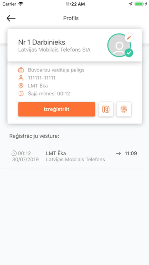 • Risinājums piedāvā iespēju reālajā laikā kontrolēt darbinieku plūsmu, veidot atskaites par nostrādātajām stundām, kā arī kontrolēt piekļuvi objektam.