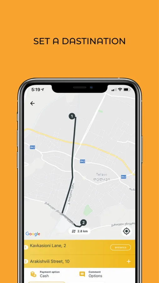 Lucky Cab is an app for corporate clients in Georgia for ordering quick and safe rides. Just open it and order a car to get to your destination: