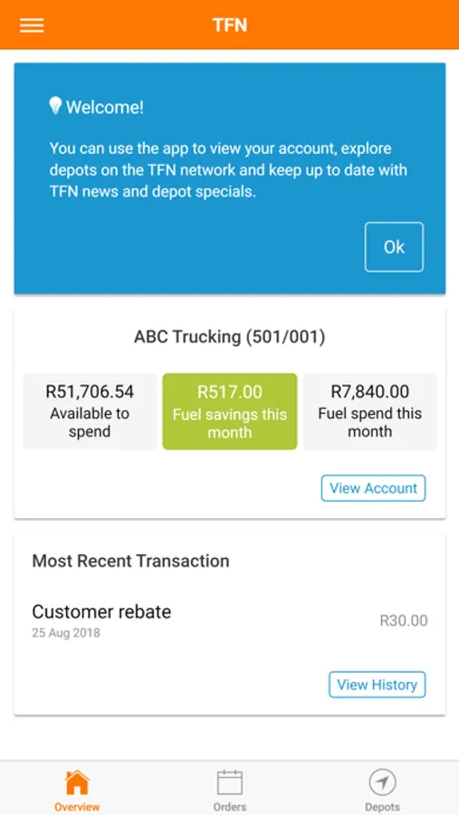 Via the app you have on-the-go access to your TFN account as well as access to the most commonly used fleet management tools TFN offer.