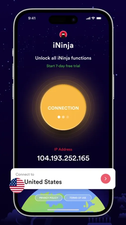 • A secure connection. iNinja VPN for iphone encrypts your Internet connection, making your stay in the global network secure. Connect to public Wi-Fi networks without fear that someone will intercept your passwords, name, or other personal information.