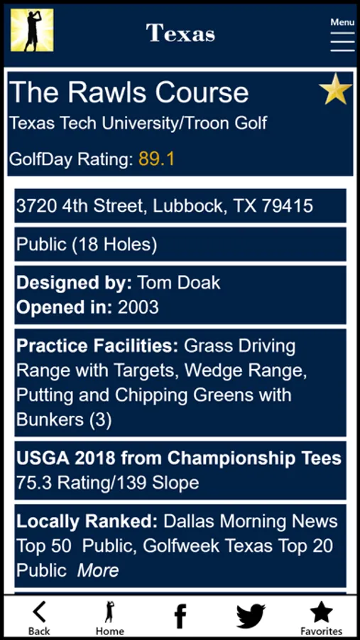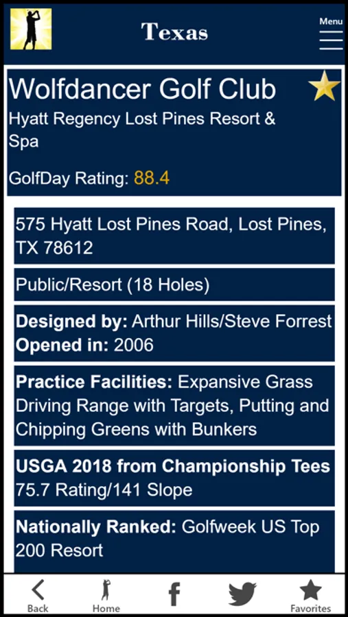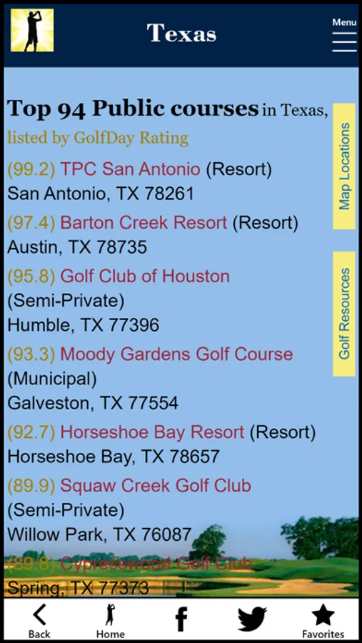 GolfDay Texas includes more than 600 golf courses in the state of Texas, with a GolfDay Rating and proximity search making it easy to find a great track near you or where you plan to be. Listings also include rates, booking links, course detail, golf league and junior golf information, mapping/directions and local weather. Don’t waste your valuable time at a Dog Track!