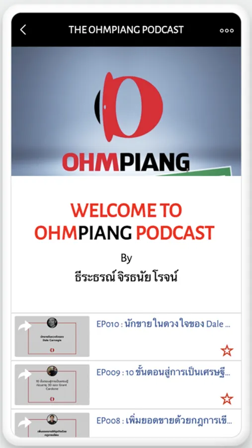 OHMPIANG | AUDIOBOOK APP FOR THAI ENTREPRENEURS AND MARKETERS Everything a small business owner needs to know to take your business and marketing to the next level. This app is recommended for small business owners who are looking for a way to optimize their results for every dollar spent. Inside the app, you will find access to podcasts, audiobooks and online courses that will help you accomplish that goal. For faster support please visit our website at: https://www.ohmpiang.com/contact
